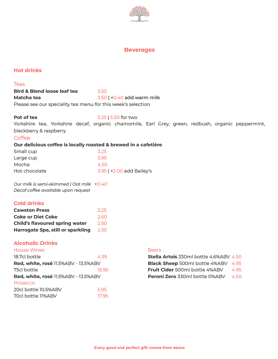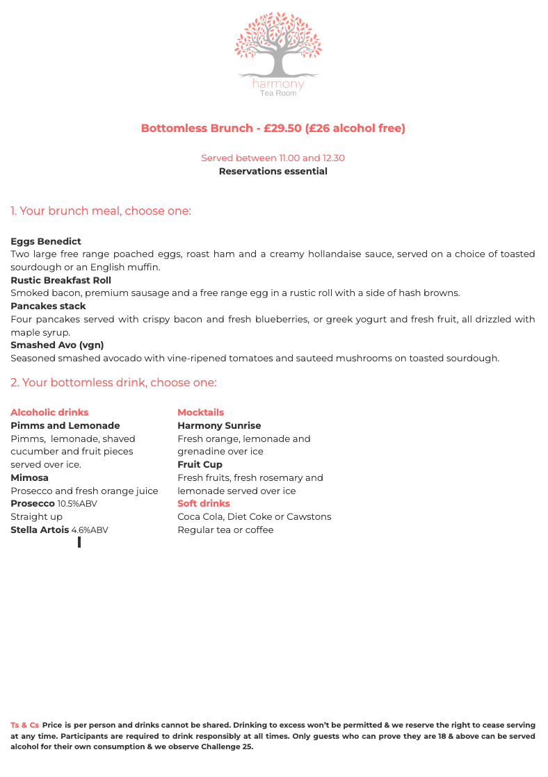 Breakfasts, Bottomless Brunches and Afternoon Teas are available to pre-book. Please see our menus below